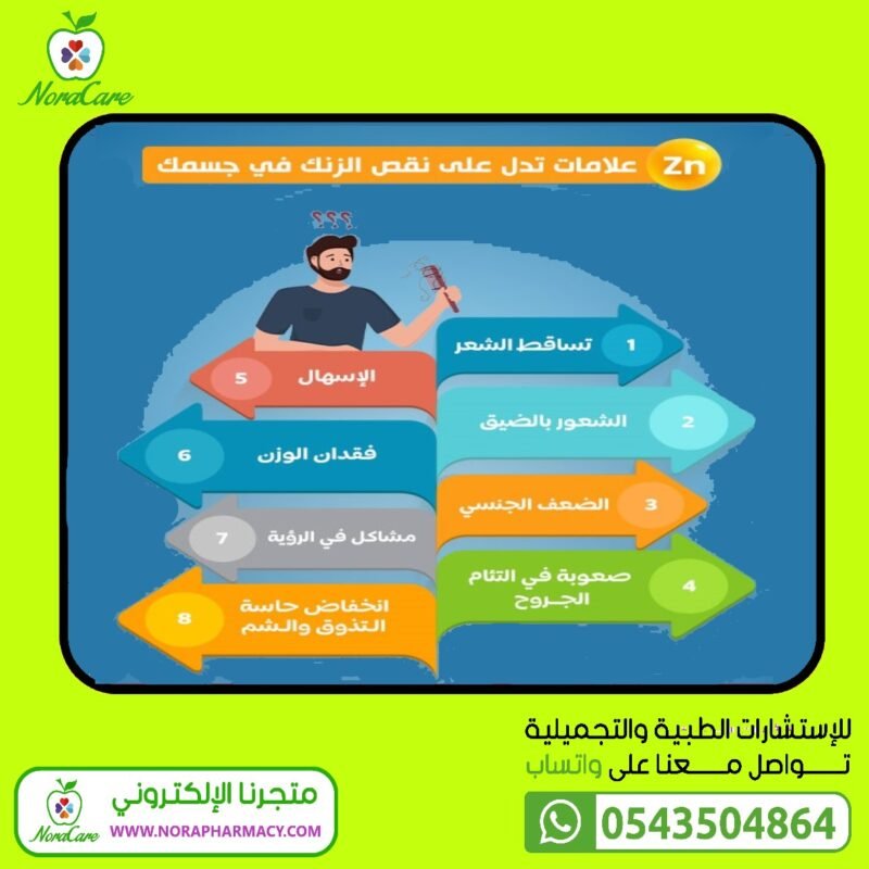 عندما ينخفض مستوى الزنك في الجسم، قد تظهر عدة أعراض، منها: