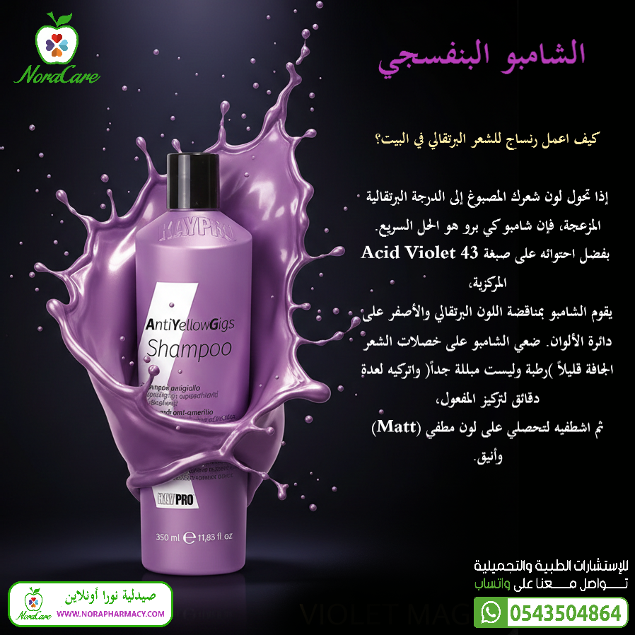 الشامبو البنفسجي لتصحيح لون الشعر المضاد للاصفرار (Anti-Yellow) الحل المثالي والاحترافي للحفاظ على نقاء وبريق الشعر المصبوغ بالألوان الفاتحة.