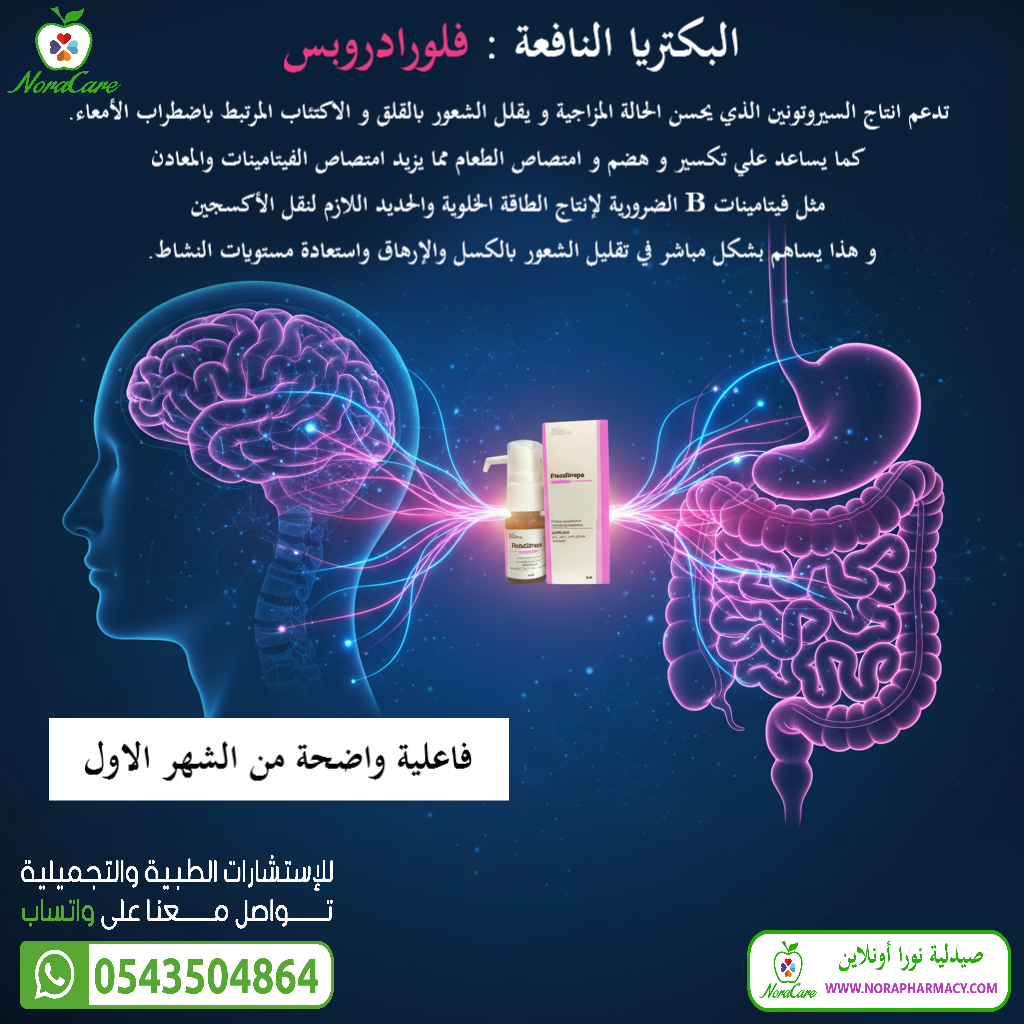 تعتمد فوائد فلورادروبس (البروبيوتيك) في هذا المجال على العلاقة القوية بين الأمعاء والدماغ، والمعروفة باسم “محور الأمعاء والدماغ”.