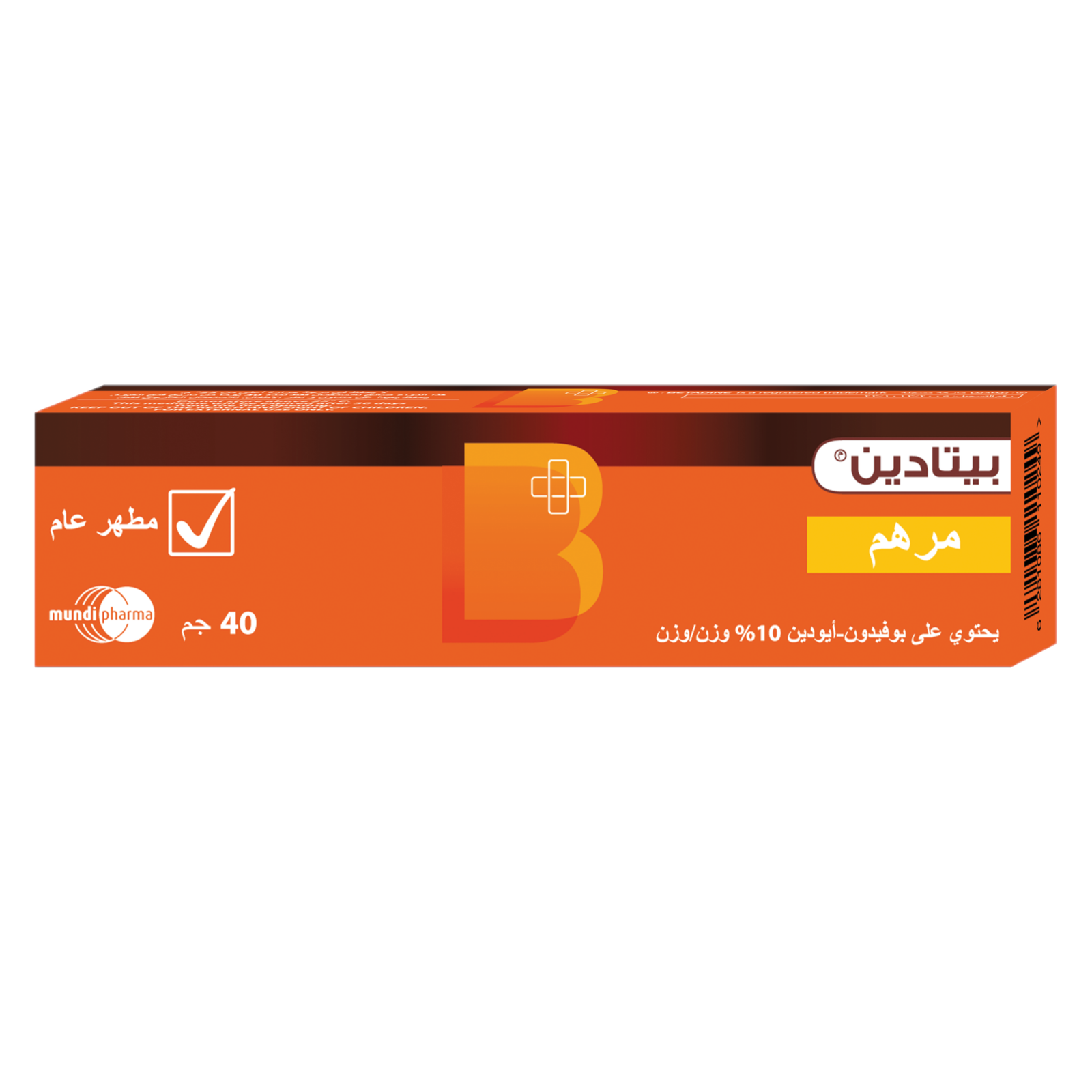 بيتادين مرهم BETADINE OINTMENT 40 GM يحتوي على المادة الفعالة بوفيدون اليود (Povidone-Iodine)،