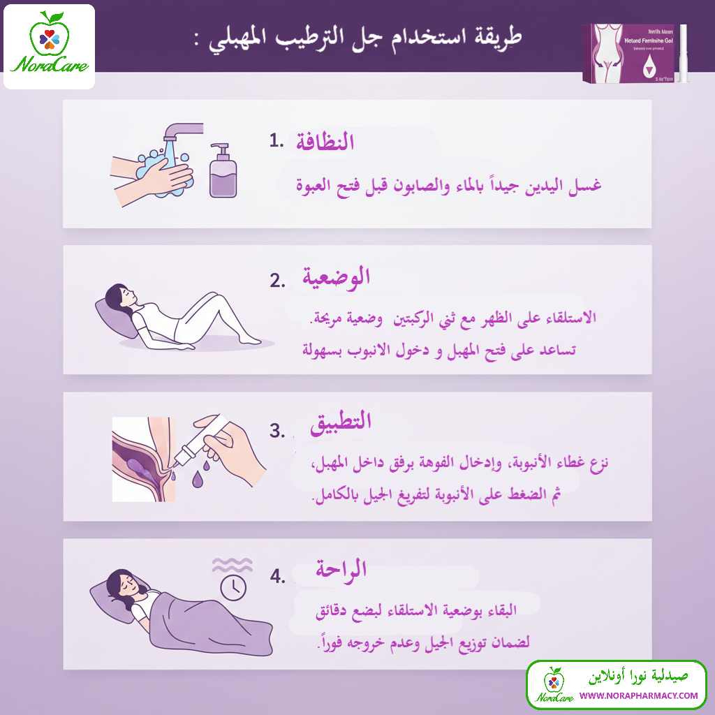 استخدام NATURAL FEMININE GEL: بانتظام (مرة كل 2-3 أيام أو حسب الحاجة) للحفاظ على رطوبة الأنسجة.