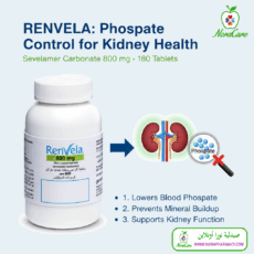 RENVELA رينفيلا اقراص 800 ملي 180 قرص هو اسم تجاري لدواء يحتوي على المادة الفعالة سيفيلامر كربونات (Sevelamer Carbonate).